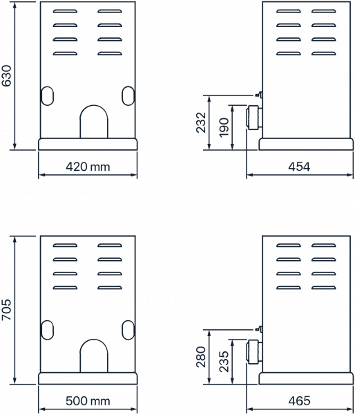 The geared motor is housed in a protection casing made of steel sheet.