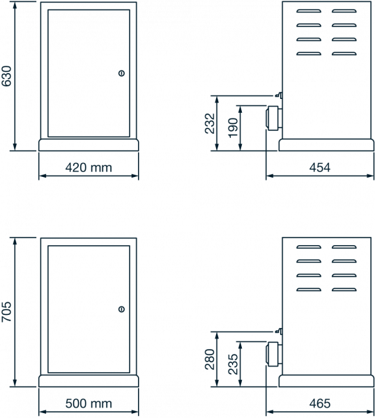 Le motoréducteur est logé dans une armoire de protection en tôle d’acier.
