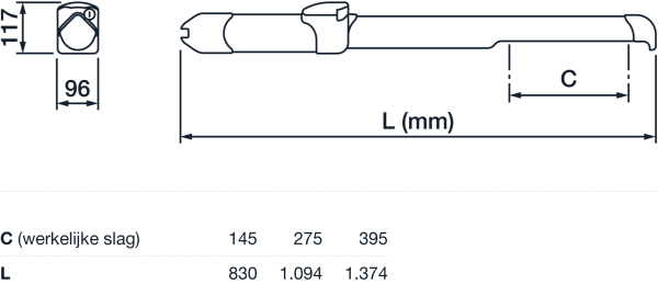 - Staafslag (mm)150280400