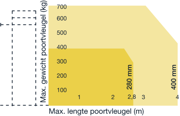In staat om grote (zelfs volle) poorten, deuren en luiken te bedienen zonder beperking van de werking.